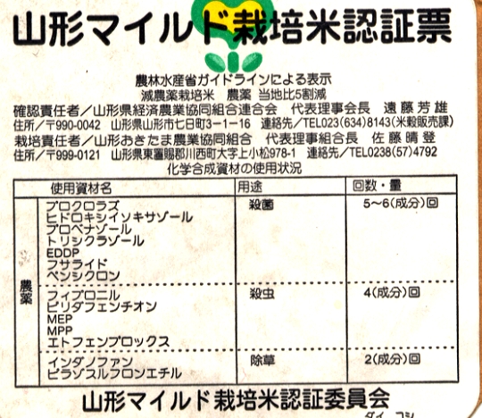 山形県の減農薬表示シール