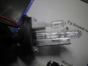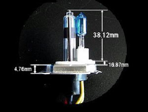 | 商品写真はこれ。口金が沃素球の規格通りの金属3本爪。Low のみHIDでHiは沃素球 色温度は6000K |