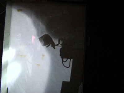 | 本当に照射角180°なのか?は、ご覧の通り。 壁面に反対側のランプの影が映る。 |