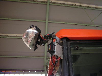 元々作業灯だけに死角ナシの照射角度フルカバー180° 上の写真は、灯体をほぼ水平での装着なのでかなり後方まで照射範囲がある。