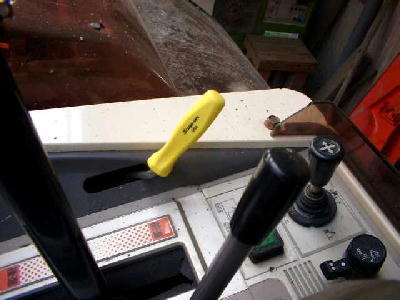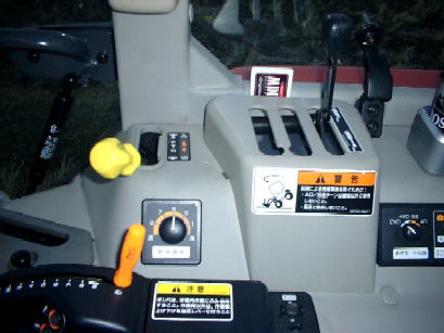 | コンバインのアクセルレバー。標準のが細かった上に、割れてスッポ抜けたので、これも「SNAP−ON」のドライバーの柄に付け替え。握り心地は「超GOOD!」(ふるっ!!) | 前にも紹介したトラクターのポジションレバーとPTOレバー これも2つとも「SNAP−ON」のドライバーの柄。 |