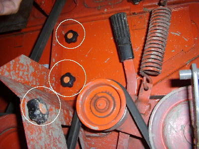| 蝶ネジで固定されていたのを付け外しがラクなノブナットに交換。蝶ネジの場合、現場で外していて草やワラの中に落としてしまうと探すのに苦労するが、これだとデカいので発見も容易。ローレット付きのユリアネジでも堅く締まっていると結構外すのに苦労する場合がある。5mmまでならユリアネジ、6mm以上ならこのノブナットの方がラク。ホームセンターで簡単に手に入る。 | |