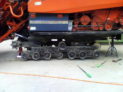 要は前の駆動スプロケットの「歯」や後の「アイドラー」をクローラの「下駄の歯」から外せばいい訳なので、現行機のように駆動スプロケットが2分割で「歯」の部分が簡単に外れれば、ここまで苦労することは無いのである。