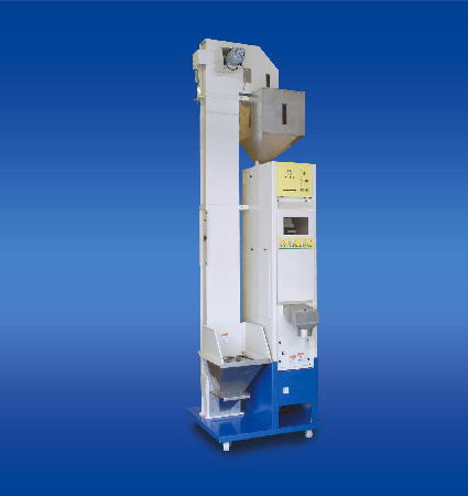 で、これが、電源とエアを繋ぎ計量器を引っ張り出してきて、とりあえず試運転の出来る状態になった。電源投入してすぐに使える訳でなく機械の暖気(準備)時間が約30分。蛍光灯の光度や色温度が安定する時間かと思うけど長過ぎないかい?ホッパーの容量は30kg一袋がちょうど張り込める容量。