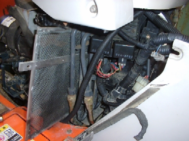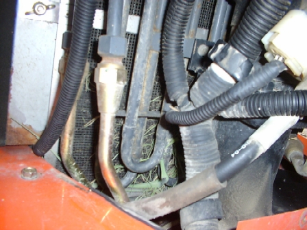ダストスクリーンでゴミをくい止めてしまえばラジエターのコアへ細かいゴミの吸い込みは防げる。あとは機械の下へ潜ってゴミ等の異物が確認されれば(どうかするとエンジンフードの脇から葉っぱが覗いている時も)写真のようにバラして掃除すればオーバーヒートにまでは至らない。とりあえずはこれでおっけ。でも実際問題として水温がどのレベルまで上がっているかは水温計がないので不明。