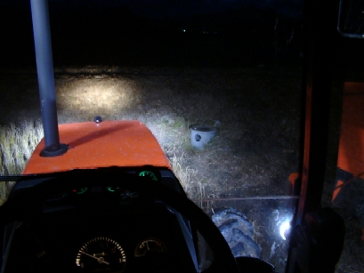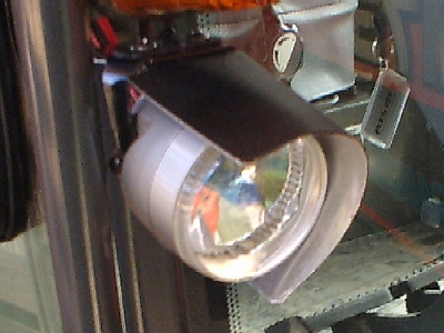 | 作業灯にPHILIPSの4300kの「バルブ」を入れた図。視界は大分クリアーに感じる。 | ヘッド、作業灯、ウィングをフル点灯の図。ヘッドの色温度の低さは歴然。 |