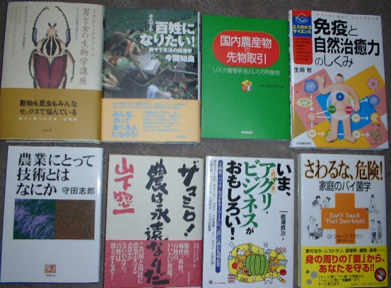 漫画や週刊誌も読む読む、少年誌から青年誌。以外におもろい記事が載っているのが「週刊プレーボーイ」たまに出る農業関係記事は、農業専門誌では絶対見られない、「農業のシロートの視点」で書いてあるので面白いことこの上なし。今まで一番印象的なのが98年10月13日号の「21世紀を食料危機から救うの<突然変異>だ!」と言う記事でしょう。遺伝子組み換えで人為的に品種改良された植物(品種)より突然変異で自然発生的に現れた品種こそが今後の食料危機を救うと言うモノ。「イセヒカリ」や「寿太郎ミカン」、サツマイモの「紅赤」なんかの記事が掲載されています。