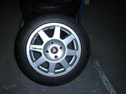 私好みのジミだけど濃ゆいのを選択。今時珍しいサイズのspeed−line Preo 6.5JJx15 オフセット40mmに195−55−15が組んである。(60の扁平率でも一向に構わんのだけど)東北の某量販の中古品センターのモノ。注文時にタイヤの残り山は書いてなかった。雪国なので融雪剤でも腐蝕が気になったので問い合わせたら「冬は履き替えますんで夏だけの使用です」とのこと。雪の降らないこちらと違い、あちらでは夏冬でのタイヤの履き替えは当たり前みたい。傷や剥がれ、腐蝕の一切無いきれいなホイル。